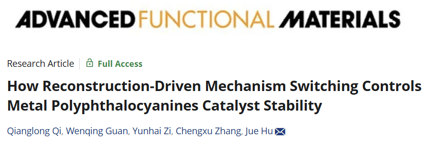 近日,昆明理工大学非常规冶金团队胡觉教授在金属有机框架动态重构研究上取得重要突破,揭示了金属酞菁催化剂中活性位点动态重构驱动反应机理转变并调控催化稳定性的重要规律。相关成果以“How Reconstruction-Driven Mechanism Switching Controls Metal Polyphthalocyanines Catalyst Stability”为题,发表在材料领域权威期刊《Advanced Functional Materials》上。