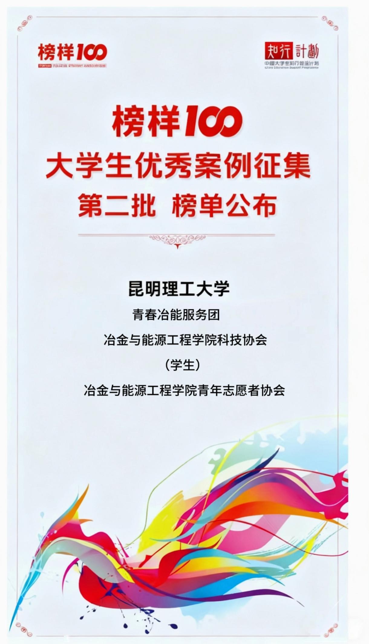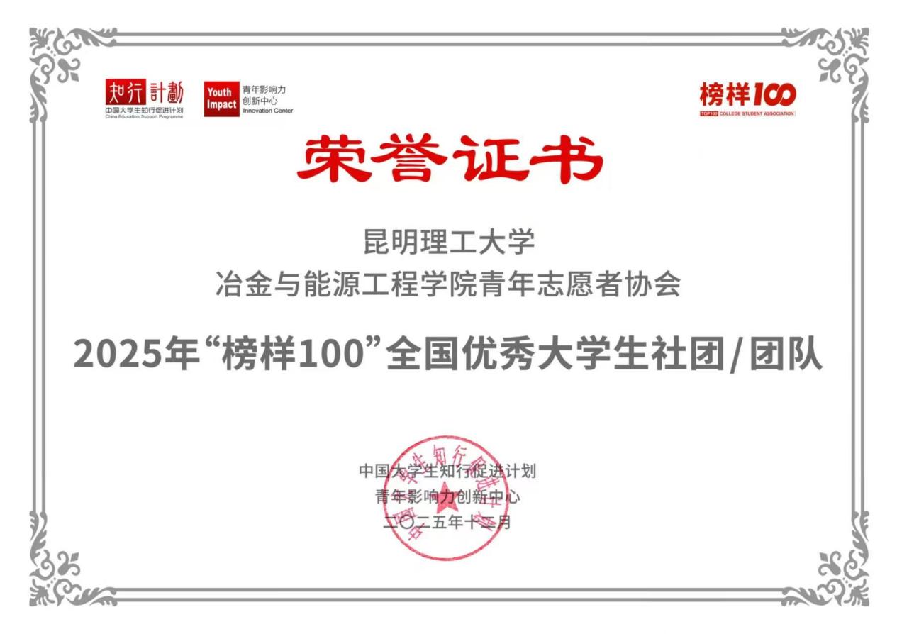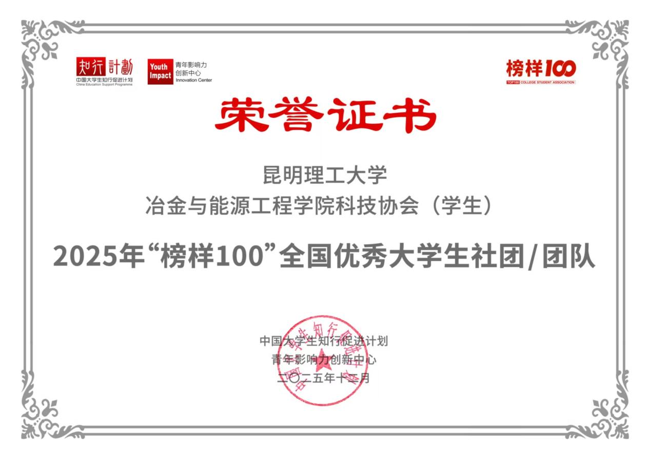 【喜报】祝贺!冶金与能源工程学院3支团队入选“榜样100”全国大学生优秀社团榜单