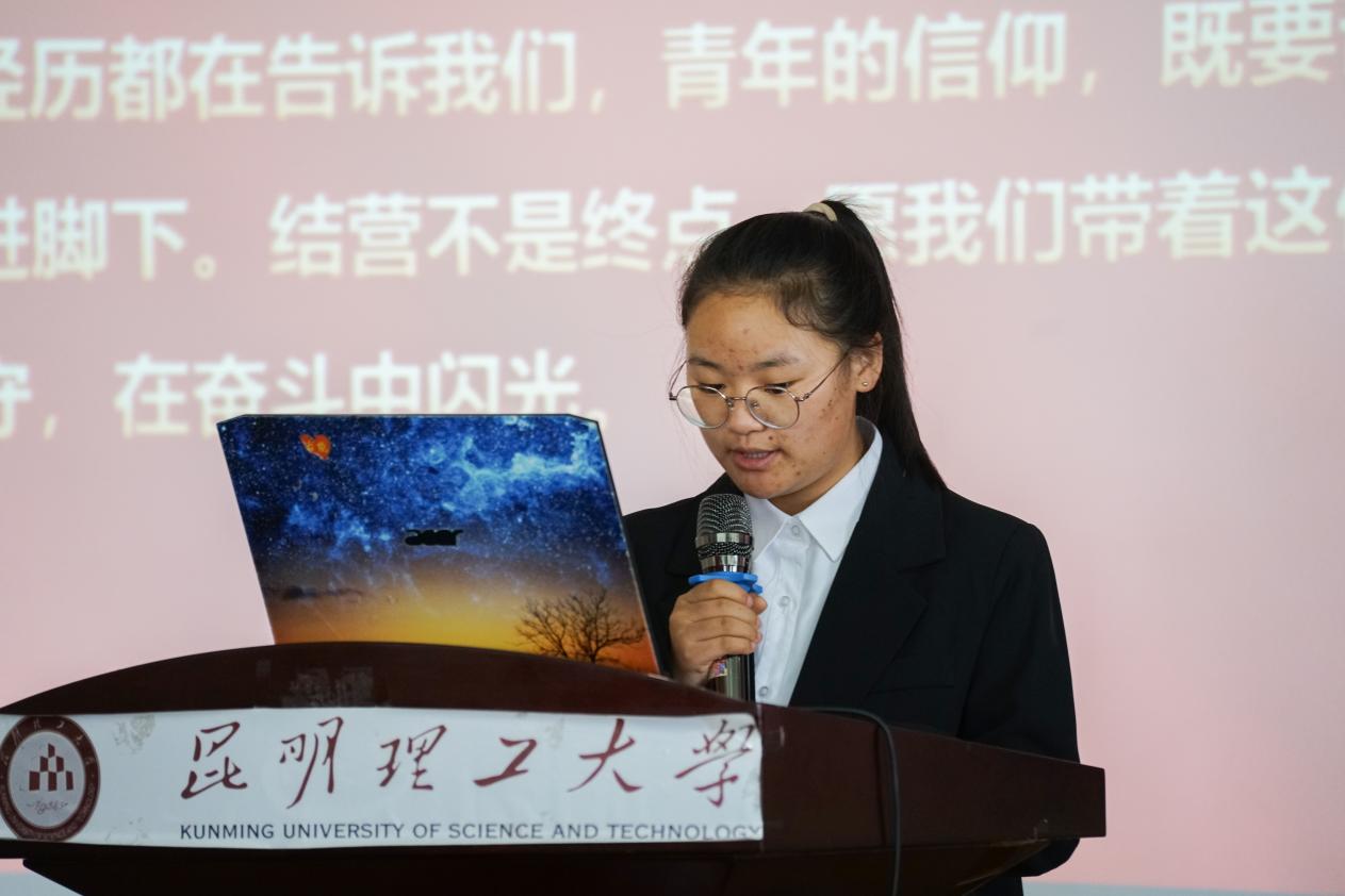 能源与动力工程专业2024级本科生高远泽代表第十五期卓越班全体学员感谢学校搭建的平台和各位老师的悉心培养。她总结了一年来的学习收获,鼓励新一期青马学员刻苦学习、勇于实践,锐意进取、笃行不怠,不驰于空想、不骛于虚声,争做习近平新时代中国特色社会主义思想的坚定信仰者、积极传播者和忠实实践者。