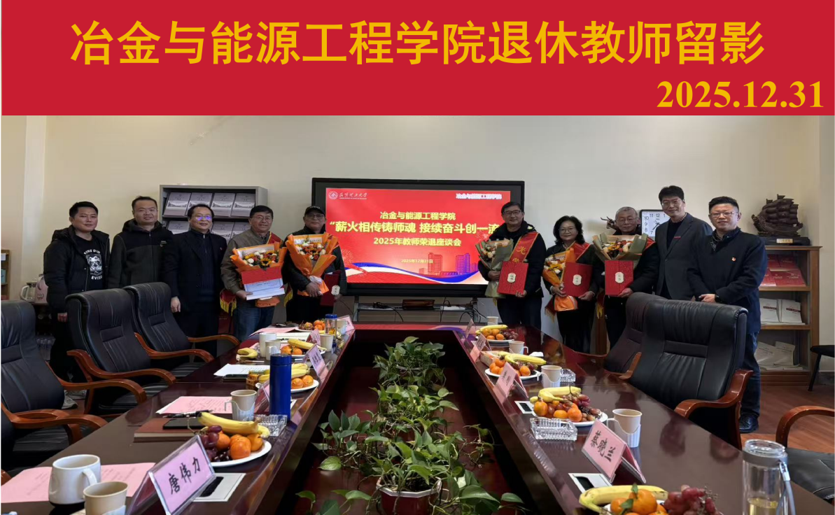 又是一载流光溢彩,又是一季桃李芬芳。2025年12月31日,冶金与能源工程学院以“薪火相传铸师魂 接续奋斗创一流”为主题,在210会议室举行了2025年离退休教师荣退仪式,学院领导班子成员、退休教师、工会等参加活动。仪式由院党委书记徐瑞东主持。