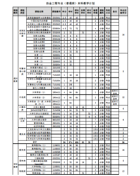 冶金工程专业(普通)本科人才培养方案